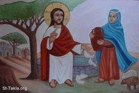 جائت السامرية كعادتها متوقعة ألا تجد أحداً لكنها وجدت يسوع رأت من شكله و وقاره أنه رجل دين و فكرت في داخلها: هل سينظر لي باحتقار؟ أم سيوجه كلام عنيف و قاسي لي؟ ليته يتركني فهو لن يفهم كم تعبت من نظرات و كلام الناس