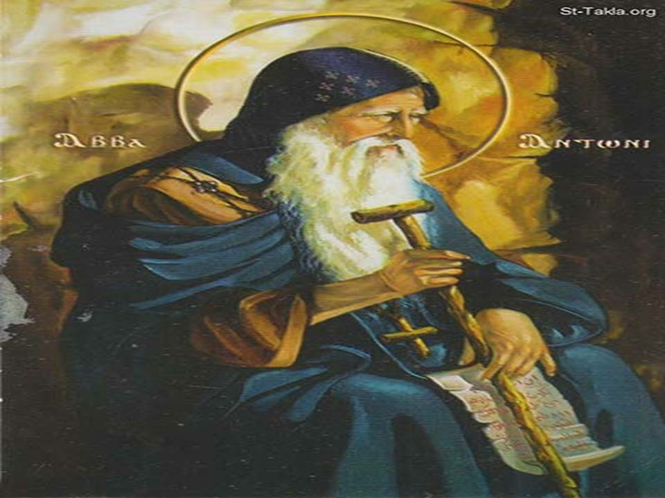 + كان عينا ، انتصر على محبة المال .. حقا ما أعسر دخول الأغنياء إلى ملكوت السموات ولكن عظمة الانبا انطونيوس جعلته يبيع كل ماله ويودعه على الفقراء بل ويعيش حياة الكفاف والنسك والزهد كان أميا ، إستنار بالمعرفة الألهية : إستطاع أن يمتلىء من روح الحكمة وتتدفق كلمات النعمة من شفته ، ونتصر على فلاسفة عصره مظهراً كيف أن الله إختاروا جهالة العالم لتجزى بهم الحكماء + كان مسئولا عن أخته ورعايتها . فأودعها بيتا العذارى المكرسات وخرج وهو لا يعلم إلى أين يذهب وما الذي يعمله ، إذ ليس من دير أو مرشد أو منهج سابق وهذه هى قوة الايمان التي تجاوز أبعاد الزمان والمكان والكيان .