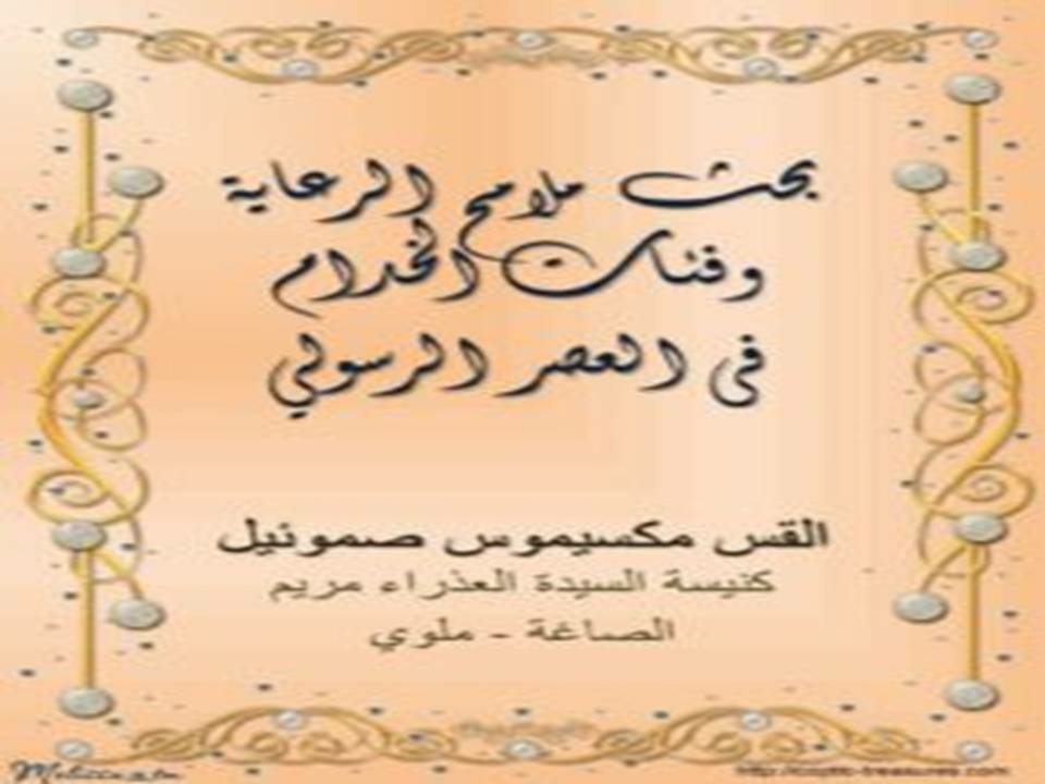 بحث ملامح الرعاية فى العصر الرسولى وفئات الخدام فى العصر الرسولي