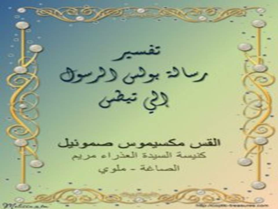سيامة أساقفة وشمامسة : وهذا يبين أن معلمنا تيطس كان مسئولاً عن كل الجزيرة فكان عليه أن يجند كل الطاقات للعمل الرعوي على كل المستويات من البتوليين والعلمانيين والأرامل ، ويضع له شروط من يتقدم للرسالة الكهنوتية في حياته الخاصة والعائلية ومع المؤمنين وغير المؤمنين .