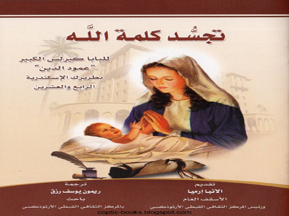 كلمة الله الآب وُلد من عذراء دعيت إلى أن تكون وسيطة فتلد بالجسد من كان متحدا بالجسد. عمانوئيل هو الله ؛ والتي ولدت الإله الذي ظهر لأجلنا يجب أن تُدعى والدة الإله.(العظة الفصحية ١٧)كان القديس كيرلس الإسكندري، في مطلع القرن الخامس ملفان التجسّد. هذا عنوان مجد من كان، على حدّ تعبير نيومن ، لاهوتياً أصيلاً.