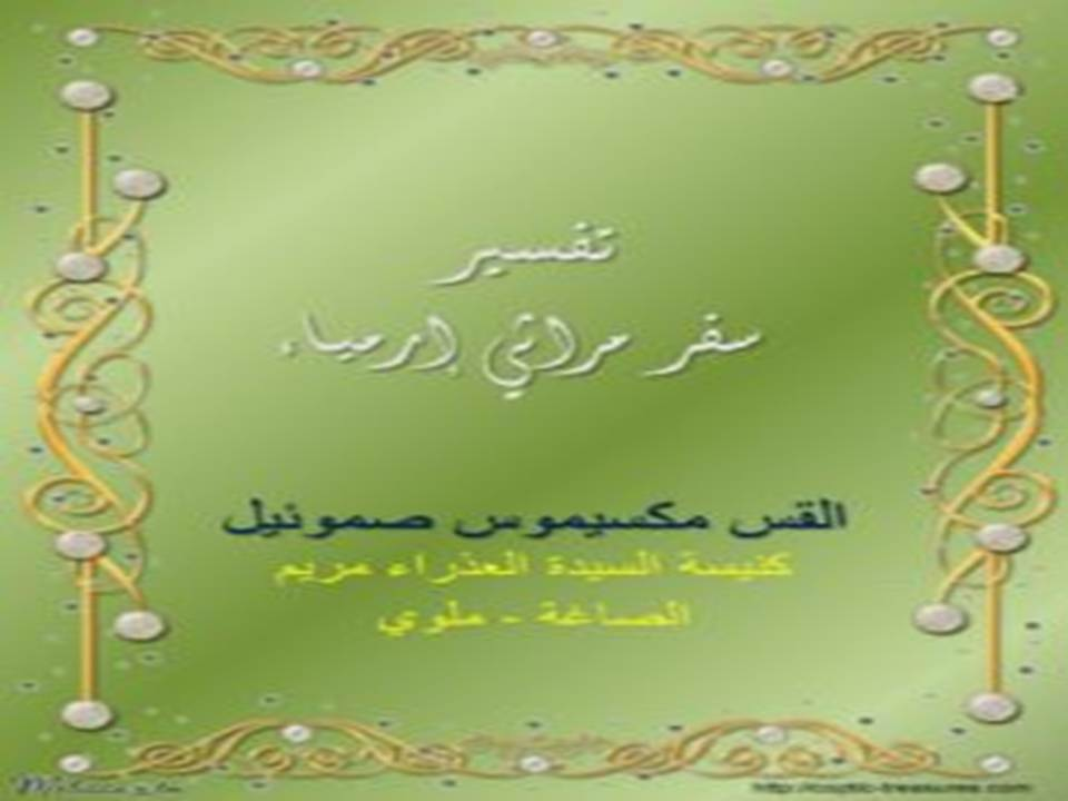 هو بكاء إرميا عند خراب مدينة أورشليم وحرق الهيكل بالنار وحرق قصور المدينة فبكى واندفعت منه ينابيع دموع بلا حصر (مرا ۳ : ٤٨ ، ٤٩) ، وقد جاء في مقدمة الترجمة السبعينية والفولجاتا اللاتينية ويُظن أنها في الأصل العبري ما يلي : (حدث أنه بعد أن اقتيد إسرائيل إلى السبي دمرت أورشليم جلس إرميا يبكي وينتحب بهذه المرثاة على أورشليم). (مرا ۱: ۱).