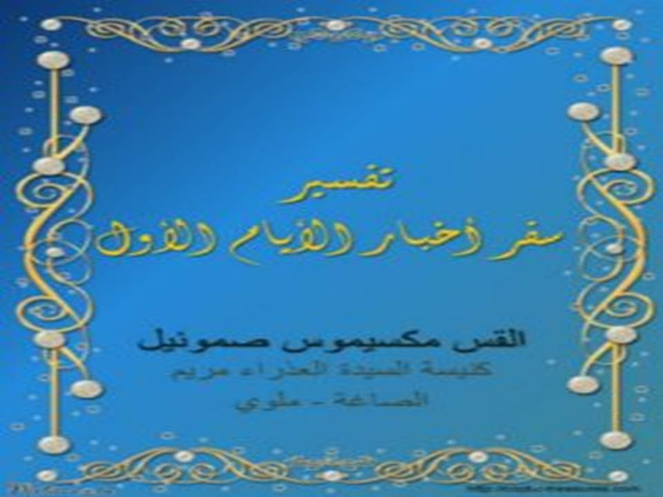 1. في نسخة الفولجاتا (الترجمة اللاتينية لجيروم) سمي سفر الأخبار.