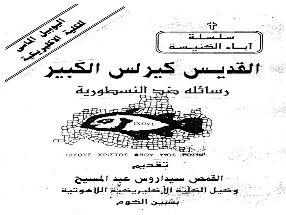 القديس كيرلس الكبير رسائلة ضد النسطورية