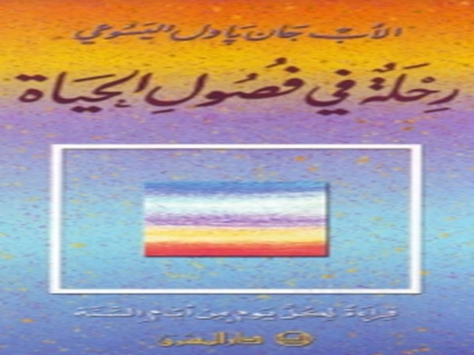 إنّه لجميلٌ جدًّا أن تُقدِّم إلى المرء في كلّ يوم من أيّام السنة فكرةً طيّبة، أو تطرح عليه تحدّيًا جديدًا، أو تُلقي في قلبه نفحةً من الرجاء… هذا ما يحاول الأب جان باول أن يُقدّم إليك من خلال كتاله الجديد هذا. للأب جان باول موهبة خاصّة في القدرة على مساعدة الإنسان كي يؤمن بذاته، وهو يؤكّد في هذا الكتاب أنّ حياةً نعيشها بانفتاح وحبّ وشجاعة واتّكال على نِعمة الله ومحبّته، تتحوّل في كلّ يوم من أيّامها إلى مغامرة ملؤها الفرح والطمأنينة والسلام. إنّه كتابٌ يجدر بكَ أن تُبقيه في متناول يدك، تزوره في كلّ يوم لتنهل منه نفحات طيّبة من الفرح والرجاء، تعضدك في مواجهة تعرّجات الحياة وفي تقلّبات فصولها، كما في متاعب أيّامها.