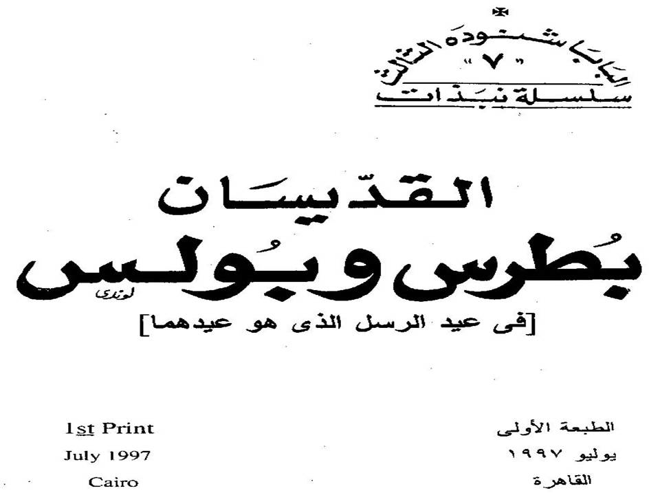 بمناسبة عيد الرسل ، كنت أود أن أحدثكم عن الرسل بصفة عامة . ولكني وجدت أن ذلك أكبر من أن تتسع له نبذة مختصرة كهذه . وهكذا فضلت أن أكتب لكم فقط عن هذين الرسولين العظيمين : بطرس وبولس . وبخاصة لأن عيد الرسل هذا ( ٥ أبيب ) هو عيد استشهاد بطرس وبولس أما الحديث عن الآباء الرسل بصفة عامة ، فتكون له نبذة خاصة فيما بعد ، إن أحيانا الرب وعشنا وصدقوني حتى اقتصارنا على هذين الرسولين فقط ، لا تكفى لهما مجرد نبذة ، إنما نتكلم بإيجاز شديد وفي هذه النبذة ، نحن لا نكتب تاريخاً . فالتاريخ قد يحتاج إلى مجلدات ، وإلى بحوث وخرائط إنما أكتب لكم هنا عن الدروس الروحية وليس التاريخ . أي ما يمكن أن نتعلمه بقدر الإمكان من حياة آبائنا الرسل . فـإن تعرضنا لشئ من التاريخ ، يكون بطريقة ثانوية .
