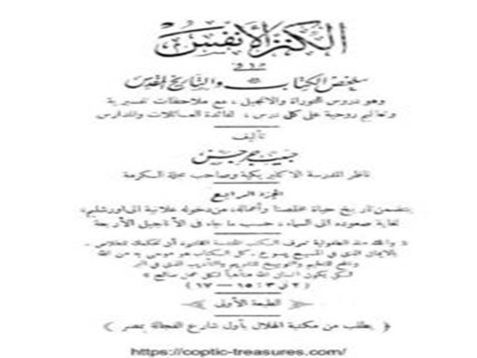 الكنز الانفس في ملخص الكتاب والتاريخ المقدس الجزء الرابع تاريخ مخلصنا من دخوله أورشليم إلى صعوده للسماء