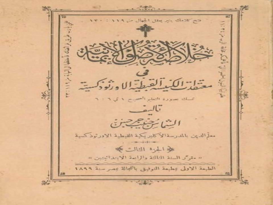 خلاصة الأصول الإيمانية في معتقدات الكنيسة القبطية الأرثوذكسية الكتاب الثالث الصفين الثالث والرابع الإبتدائي