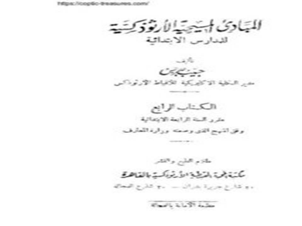 المباديء المسيحية الأرثوذكسية للمدارس الإبتدائية الكتاب الرابع الصف الرابع الابتدائي