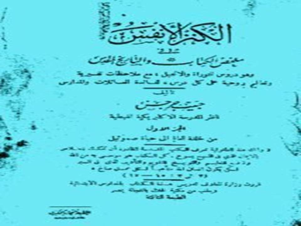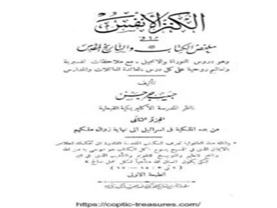 بعد حمد الله تعالى أقول . لما كان التاريخ المقدس المدون في الأسفار الانهية على جانب عظيم من الأهمية ، لانه يتضمن تاريخ الديانة ونشأنها واعطاء الشريعة وأخبار الانبياء والملونك ومعاملة عناية الله تعالى لايشر ونواميسه وأحكامه . وهو فضلاً عن أصله الالهي كما قال بعضهم : يشتمل على جلال وجمال وأدب وتاريخ وفكاهة ، فى النظم والبلاغة ، أصبح وأعذب وأنقى وألطف مما يستطاع جمعه لهذه الغاية من جميع الكتب التي صنفت في كل زمان لذلك عنيت جميع مدارس أوربا العناية الكبرى بتدريس هذا العلم المقدس. وقد تقرر فى السنة الماضية تدريسه بالمدارس الاميرية ضمن برنامجها في تدريس الديانة