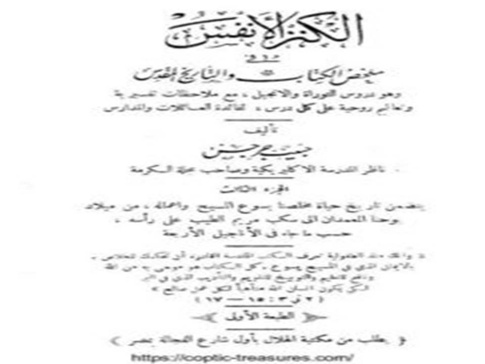 الكنز الانفس في ملخص الكتاب والتاريخ المقدس الجزء الثالث تاريخ مخلصنا من ميلاد المعمدان إلى سكب مريم الطيب على رأسه