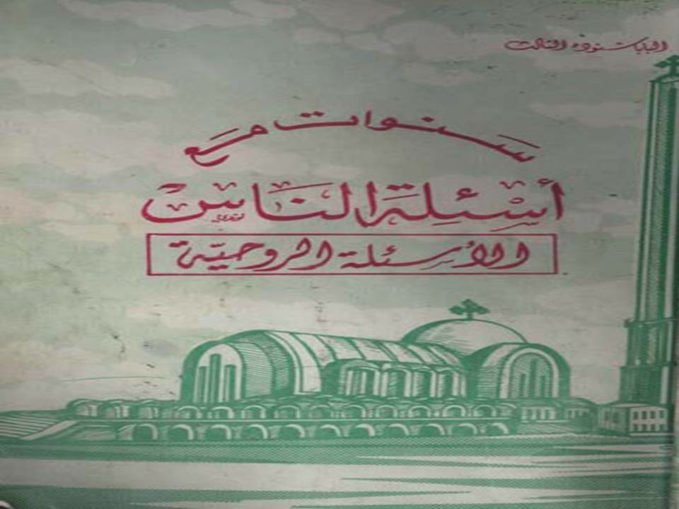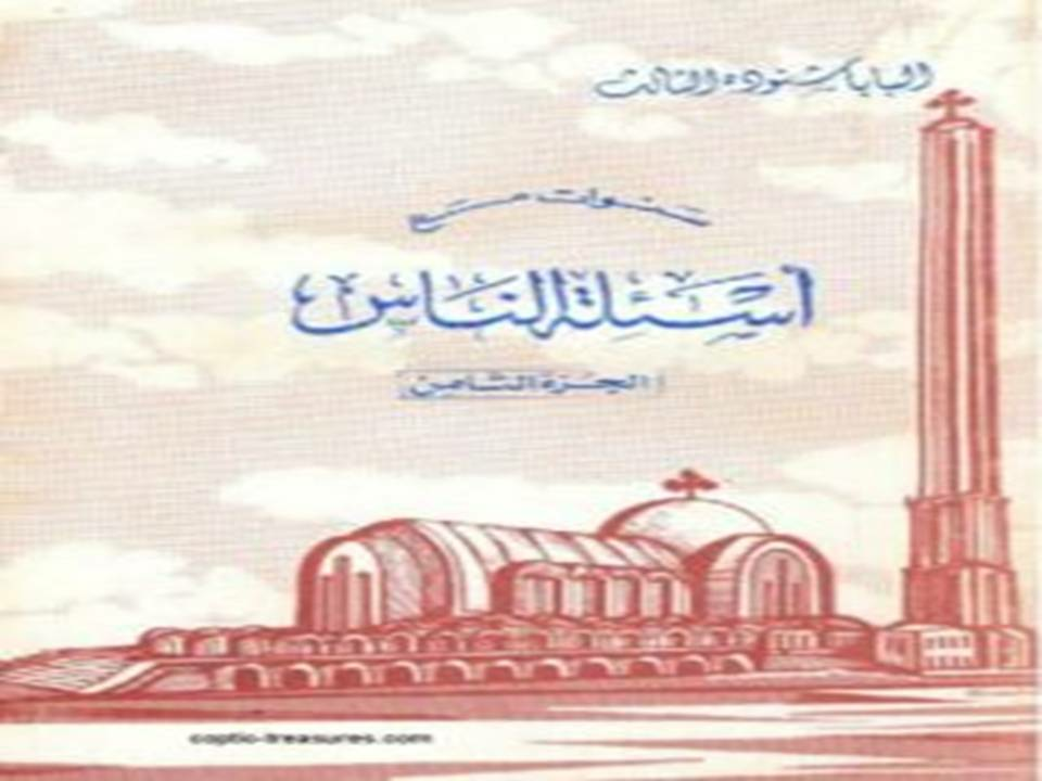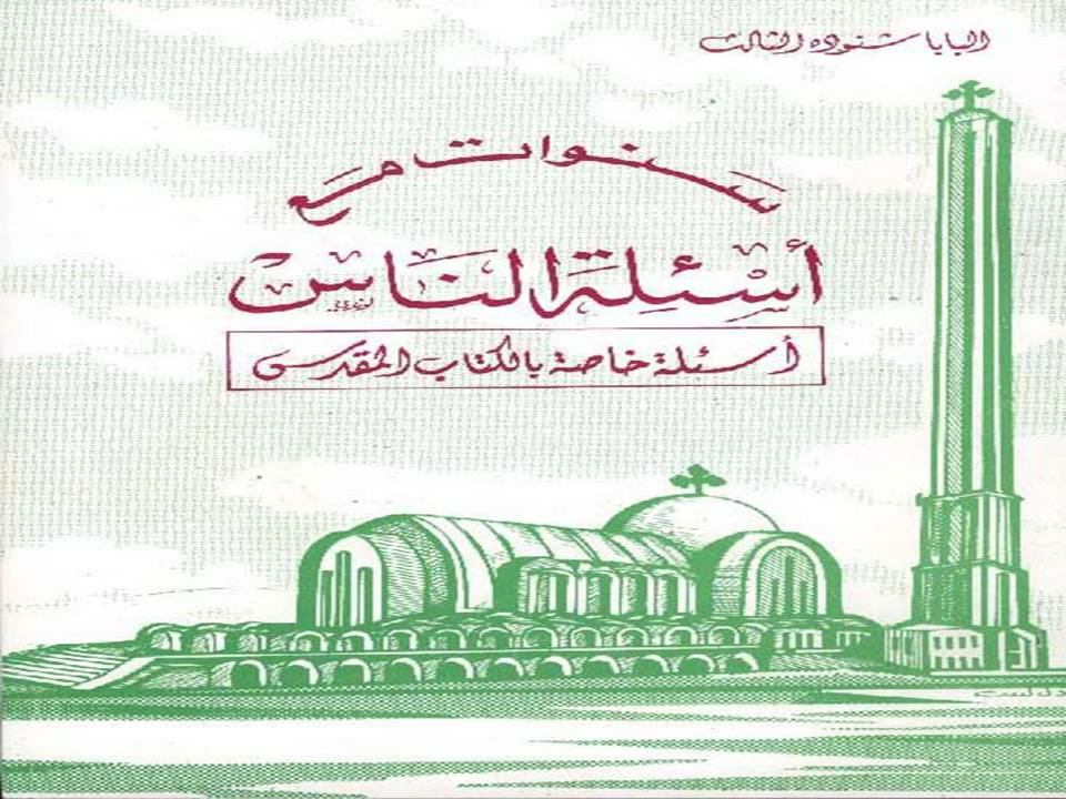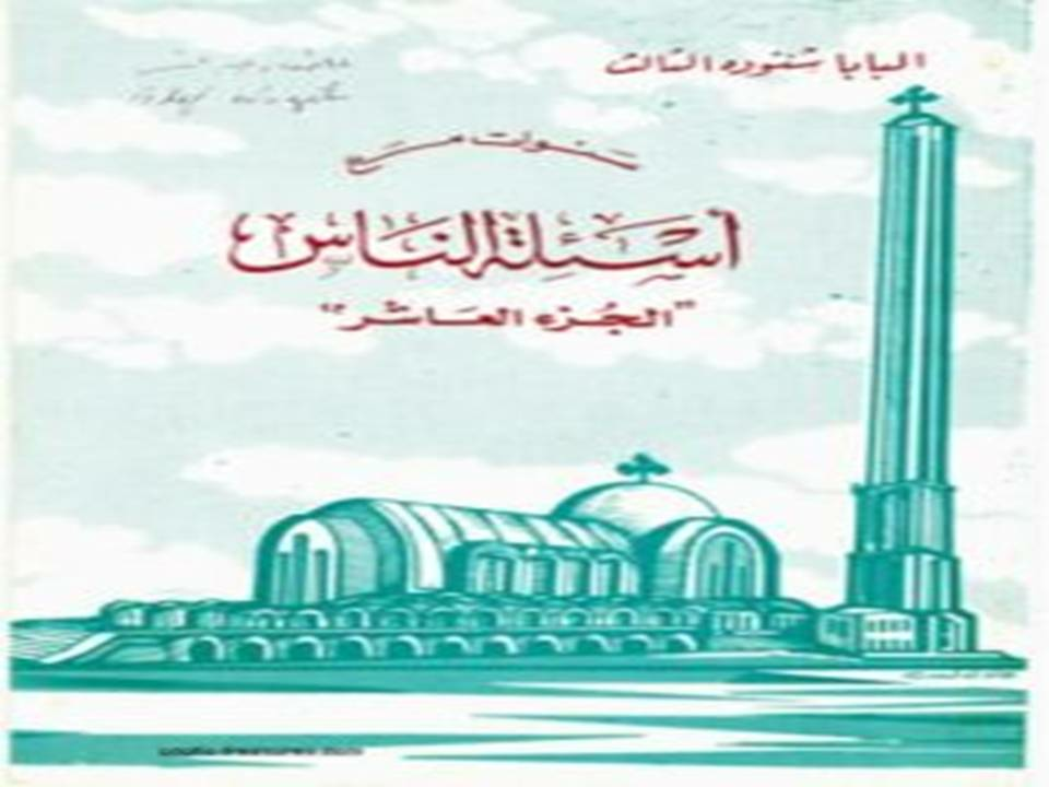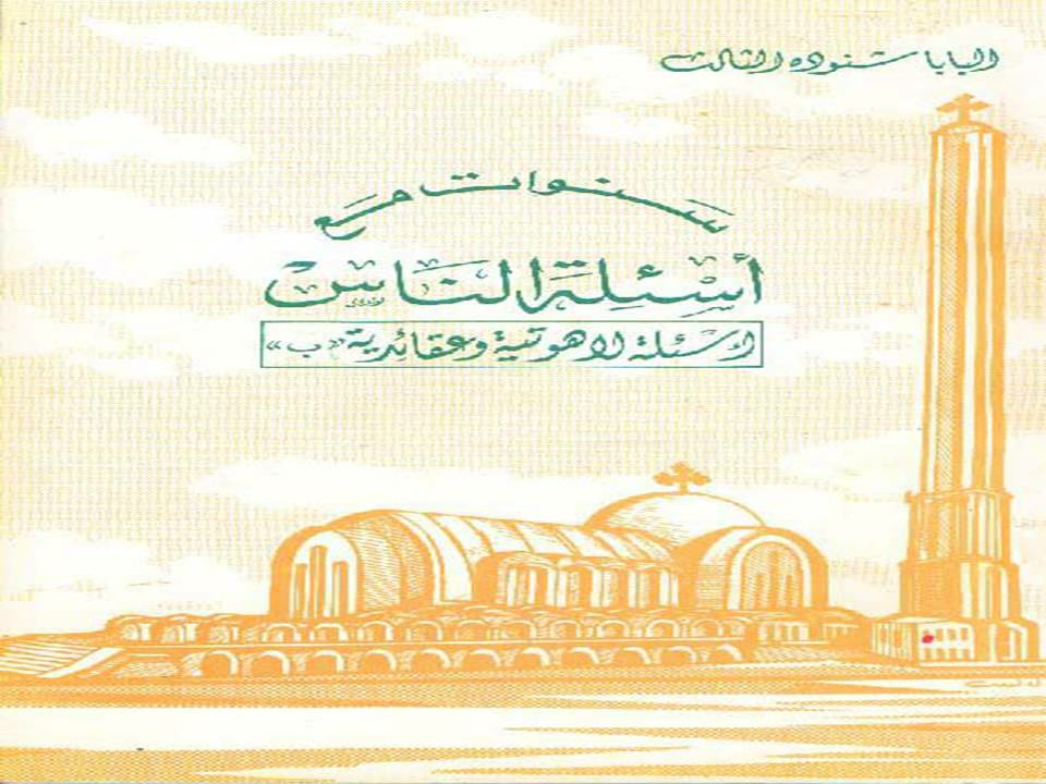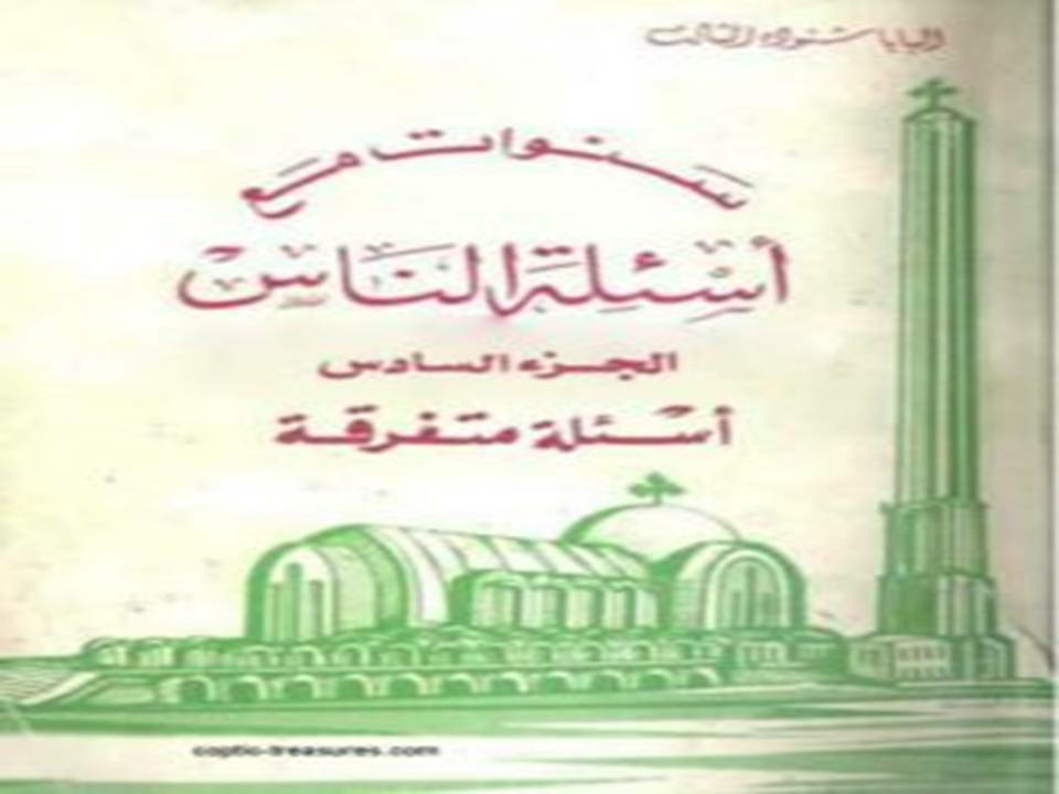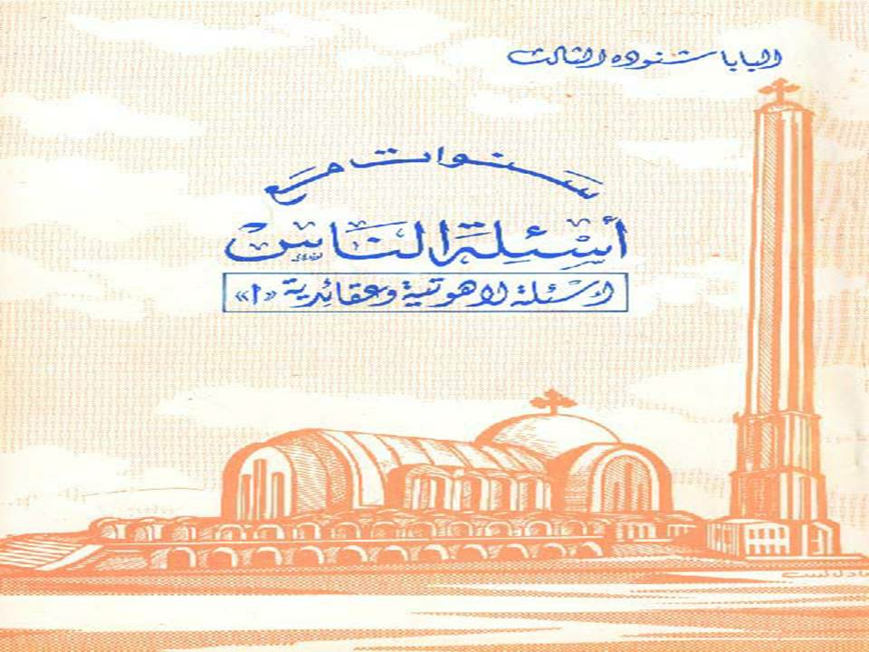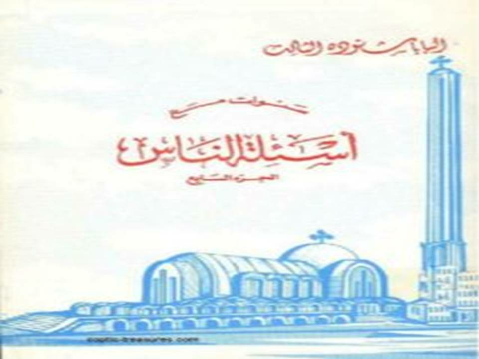 ما أكثر الأسئلة التي تلقيناها في اجتماعاتنا علي مدي سنوات طويلة . و قد اخترنا منها أسئلة نشرناها في عشرة كتب تحت عنوان " سنوات مع أسئلة الناس " و كان ما نشرناه 513 سؤالاً حتي الكتاب العاشر من هذه المجموعة الذي صدر في يناير سنة 1998 .أعيد نشر الكتب العشرة في دمشق في مجلدين كبيرين . و اهتم بذلك نيافة مار يوحنا ابراهيم مطران السريان الأرثوذكس في حلب .و مرت 3 سنوات علي صدور الكتاب العاشر . و تم نشر أسئلة أخري متفرقة في مجلة الكرازة .ثم رأينا أن نعيد نشر الكتب العشرة مرتبة موضوعياً .