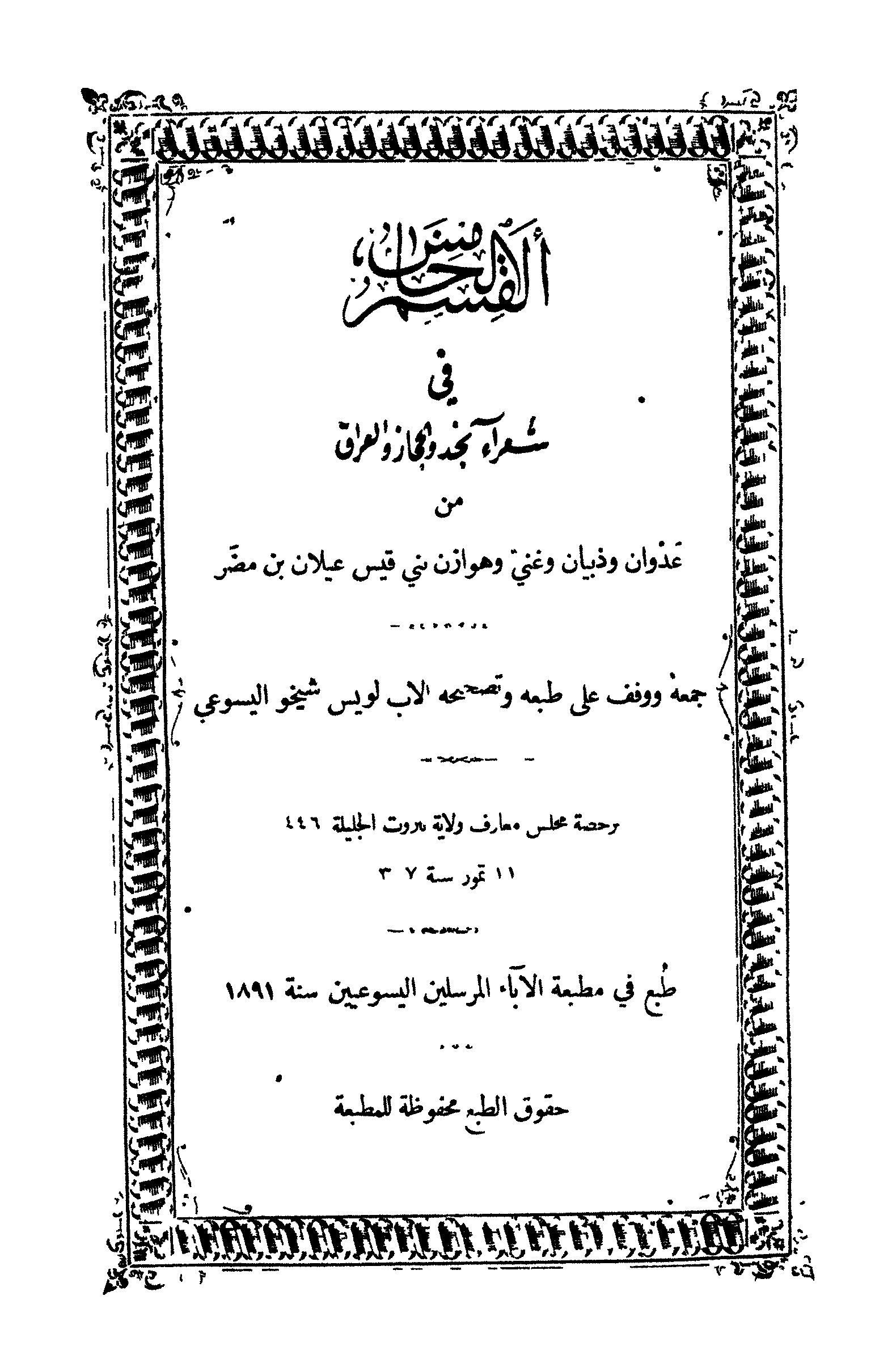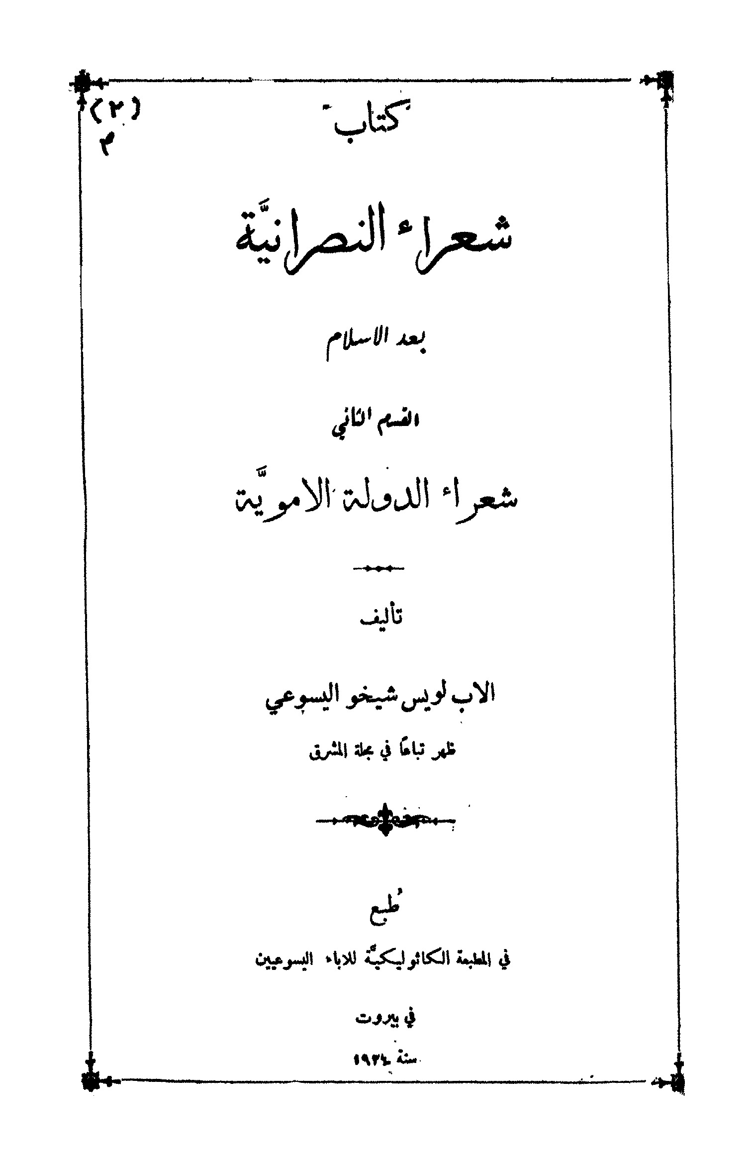 على ان النصارى لم يهملوا مع ذلك درس اللغة العربية وفنونها اللسانية من نثر وشعر لولا ان كوارث الدهر قد اضاعت كثيراً منها . وها نحن في هذا الجزء ندون ما وجدناه من ذلك متفرقاً في كتب الادباء وخزائن المخطوطات الدولية