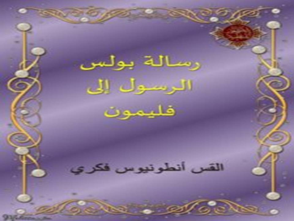 هذه رسالة شخصية وجهها الرسول بولس إلي صديقه فليمون من أجل عبده الهارب أنسيمس الذي التقي بالرسول في روما وآمن علي يده وتاب وإعتمد وبعد فترة أعاده الرسول ومعه هذه الرسالة. وهي رسالة مملوءة حباً وحملت تطبيقا عمليا للمبادئ المسيحية. نري فيها الرسول في انشغاله بالخدمة وبمشكلة العبد أنسيمس مع سيده فليمون ينس آلامه هو الشخصية وانه مسجون، لكن يفيض من حبه لكل من فليمون وأنسيمس.
