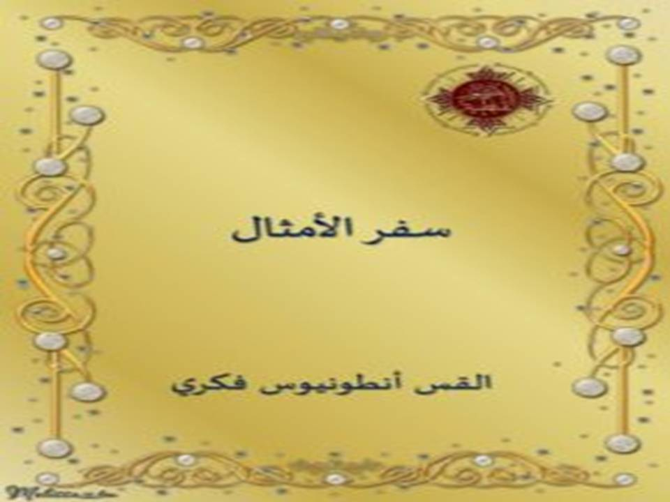 و. والله حتى يحمي عبيده من تأثير الأمثال السيئة المفسدة سمح بوجود أمثال مقدسة، أوحى الله بها بواسطة روحه القدوس لبعض رجاله في كل مكان. ولنفس السبب تستخدم الكنيسة التراتيل والألحان والتسبحة لتحمي شعبها من تأثير الأغاني العالمية الهابطة.