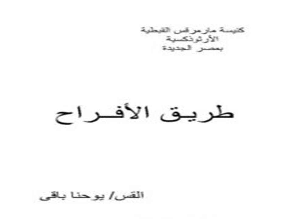 قدمت المدنية اختراعات كثيرة لراحة الإنسان ، واستطاعت بعلم الدعاية أن تجتذب قلبه إليها ، كل هذا كان الغرض منه إسعاد الإنسان ، ولكن للأسف على قدر جرى الإنسان وراء كل ما هو جديد كان بهذا يبتعد عن السعادة ، وازداد انتشار الاكتئاب وسط الناس . ولا يمكن إيقاف تيار المدنية والتقدم العلمي ، الذي يمنح المخترعين والشركات مكاسباً مادية . وفي نفس الوقت يبهر الإنسان ؛ فيطلبه بشدة ويتمناه ، ولكن مازال السؤال : أين الطريق إلى الفرح ؟ يظهر فجأة رجاء لكل المتضايقين وهو مختلف تماماً وسائل الفرح التي ينادي بها العالم ، ألا وهو شخص ربنا يسوع المسيح ، الذي تجسد ليعطينا الفرح ، وليعطينا حياة أفضل . عن ما هو الفرح الذي يقدمه لنا المسيح ؟ وكيف نناله وسط وسائل كثيرة للفرح في العالم ؟ وكيف نميز وسائل الفرح العالمي لنحترس منه ووسائل الفرح الحقيقي الذي يهبه لنا المسيح ؟ سنناقش على صفحات هذا الكتاب الفرح العظيم الذي يقدمه لنا الله ، وكيف نميزه ونقتنيه ولا نضل في متاهات الأفراح العالمية ، التي تنتهي بنا إلى التعاسة ثم الهلاك .