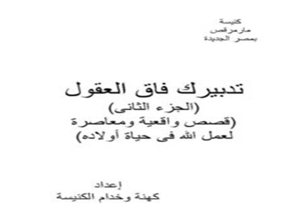 إن ضغوط الحياة المادية في الآونة الأخيرة قد أثرت على الكثيرين . ومع التقدم العلمي والأجهزة الحديثة ، فقد أصبح العقل هو المحرك الأساسي للإنسان في كل مجالات حياته ، وكذلك أصبحت الأحداث المادية هي التي تشكله . وبالتالي أصبح معرضا للإحباطات والاكتئاب ؛ لعجزه عن مقاومة قوى العالم التي هي أكبر منه . لذا فالإنسان المعاصر أحوج ما يكون لأن يشعر بالله في حياته . ويزداد إيمانه به ؛ حتى يحتفظ بسلامه ولا ينزعج من الأمور المعاكسة . وحتى يثق في نفسه المعتمدة على الله ؛ فيتقدم بنجاح في كل أعماله ومعاملاته . قدمنا في عام 2003 الجزء الأول من سلسلة ( تدبيرك فاق العقول ) ، التي هي قصص واقعية تجسد يمان المسيحى وتظهر من خلال حياة أولاد الله . وفي هذا الكتاب ، الذي هو الجزء الثاني من هذه السلسلة ، نقدم مجموعة جديدة من هذه القصص ؛ لتعينك أيها القارئ في مسيرة حياتك وتعمق علاقتك مع الله وتشددك لتنجح في كل أعمالك . وامتاز هذا الكتاب بتبويب القصص تحت مواضيع روحية أساسية في حياتنا ، فهو يشمل ثلاثة أبواب رئيسية هي :