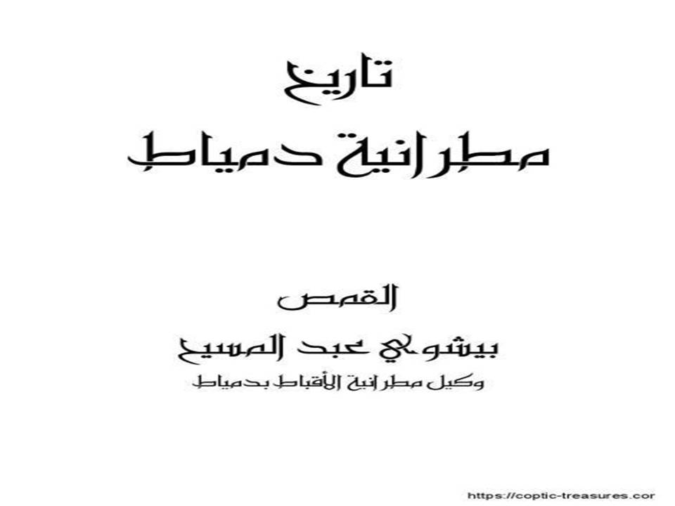 دمياط أو تامياتي ( تامحيت ) مدينة قديمة يرجع تاريخها إلى ماقبل الميلاد ولها تاريخ حافل بالأحداث ، بإعتبار موقعها على أحد فرعى النيل الرئيسيين ، كما أنها ميناء مشهور قديم لمصر إلى جوار أنها تقع في المدخل الشمالي الشرقي لمصر حيث دخل كثير من الغزاة على مدى التاريخ . وكان في منطقة دمياط ثلاث إيبارشيات قديمة مزدهرة كما أن مطرانها في بعض العصور كان مسئولا عن القدس ( أورشليم ) ضمن إيبارشيته ، ولكنها في عصور أخرى قد تدهور حالها وفقدت إيبارشيتها ، أو صارت تابعة لإيبارشيات أخرى . وقد سررت بالمجهود الرائع الذي يبذله القمص بيشوى عبد المسيح وكيل المطرانية بدمياط في جمع تاريخ هذه الإيبارشية . وهو أقدر من يقوم بهذا العمل في هذا الجيل إذ أنه قد عاش بدمياط منذ سنة 1966 م حينما سيم كاهناً بها بيد المتنيح الأنبا تيموثاوس مطران الدقهلية ودمياط في ذلك الحين . كما أنه عاصر بعد ذلك أسقفين لدمياط بعد تقسيم إيبارشية الدقهلية ودمياط إلى إيبارشيتين ، وعاصر خدمة نيافي الأنبا بولا الأسقف العام بدمياط إلى أن تم إختياره ليصير أسقفاً لإيبارشية طنطا ، وعاصر أيضا إخراج جسد الشهيد سيدهم بشاى من مقبرته في كنيسة دمياط القديمة ، وعصر تأسيس الكاتدرائية الجديدة للسيدة العذراء بدمياط وعاصر القمص ميخائيل سيداروس كاهن دمياط الذي خدم الكهنوت أكثر من خمسين عاماً . . وعاصر كثيـر مـن أراخنة دمياط أمثال الإرشيدياكون الفـونس نيقولا نقيب المحامين بدمياط والأستاذ مـوريس عبد السيد المحامي والدكتور فؤاد عبد الله ناظر الوقف السابق الذي استلم هذه المسئولية خلفاً للأستاذ الفونس نقولا . وقد استلم جناب القمص بيشوى عبد المسيح كثيراً من الوثائق وقام بجمع كثير من المخطوطات والصور والمعلومات عن دمياط وعائلاتها وكهنتها السابقين كما قام ببحث متسع حول تاريخ أساقفة هذه الإيبارشية قديماً وحديثاً . الكتاب بهذا يعتبر الأول من نوعه بالنسبة لدمياط ، كما أنه يعتبر ثمينة لمكتبة التاريخ القبطى على مصر العصور . فإيبارشية دمياط جزء من الكنيسة القبطية وتاريخها يعبر في كثير من مواضعه عن تاريخ الأقباط بصفة عامة . وقد حظيت دمياط بعناية كبيرة من قداسة البابا شنودة الثالث إذ أن لها مكانة في قلبه منذ أن كان قداسته أسقفاً للتعليم . وسوف يرى القارئ لهذا الكتاب سرداً شيقاً لهذه الأمور التي جعلت كل قلب في كنيسة دمياط ينبض بمحبة قداسة البابا الراعي والمعلم ، الذي يحمـل فـي قلبـه الكبير الكرازة المرقسية كلـهـا مـن أقصاء المسكونة إلى أقصاها في أرض مصر المحبوبة وخارجها